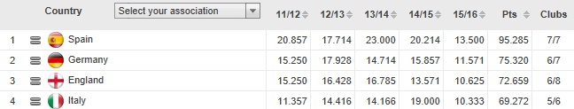 가장 큰 문제는 이번시즌을 끝으로 이탈리아와의 격차를 유지해주던 11-12시즌기록이 삭제되어 자칫 잘못할 경우 이탈리아에게 3위 자리를 내어 줄 수도 있다는 것이다.